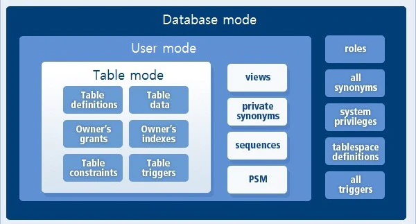 tbexport 모드에는 전체 데이터베이스 모드, 사용자 모드, 테이블 모드가 있는데요.