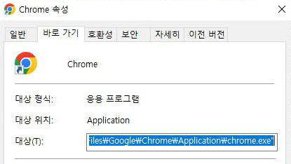 windows 환경의 경우 우선 크롬 브라우저 바로가기를 만든 뒤, 대상 부분의 "C:\Program Files\Google\Chrome\Application\chrome.exe" 부분 뒤에 아래 내용을 추가해 주면 됩니다.