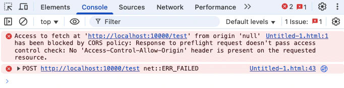 (HTML을 file:// 기반으로 열어서 실행하게 되면 브라우저에서는 origin을 null로 인식하게 됩니다.)