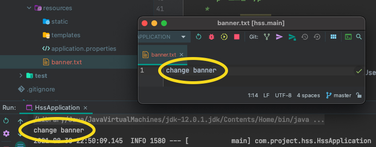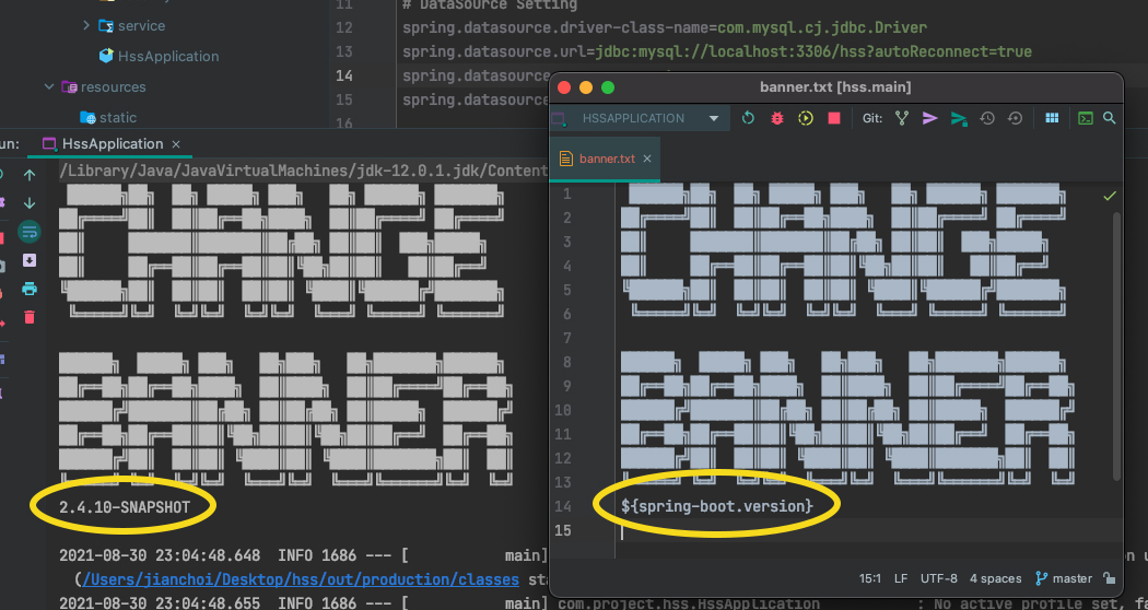 banner에 원하는 문구를 입력하고 프로젝트를 실행하면 기존에 Spring>> 배너에서 입력한 값이 출력되는 것을 볼 수 있습니다.