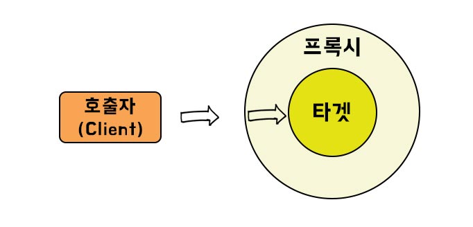 호출자(클라이언트)에서 타겟을 호출하게 되면 타겟이 아닌 타겟을 감싸고 있는 프록시가 먼저 호출되어 정의된 방식에 따라 어드바이스에 등록된 기능을 선처리 후 타겟 메소드를 호출하거나, 타겟 메소드를 호출 후 어드바이스에 등록된 기능을 실행하게 됩니다.