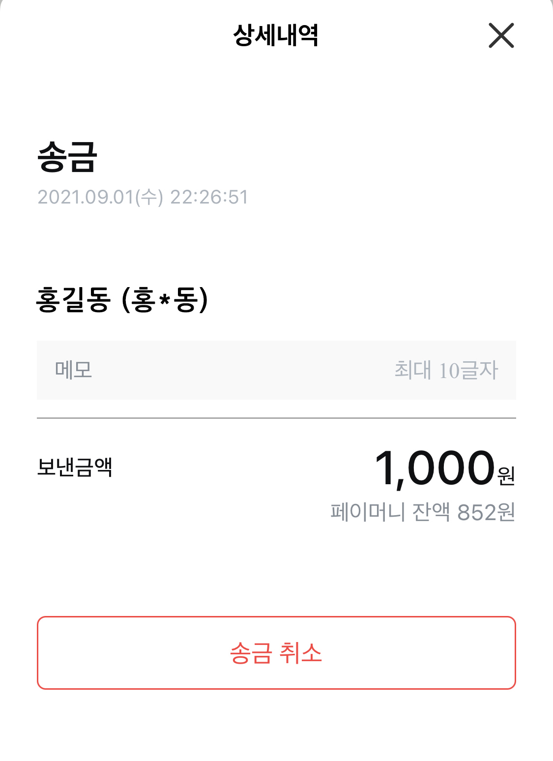 * 계좌번호로 송금했을 경우에는 취소가 불가능합니다.