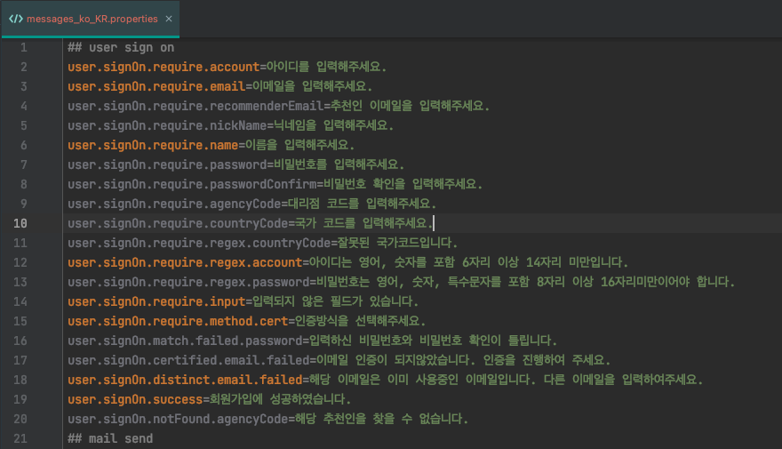 properties 파일의 한글이 정상적으로 출력되는 것을 볼 수 있습니다.