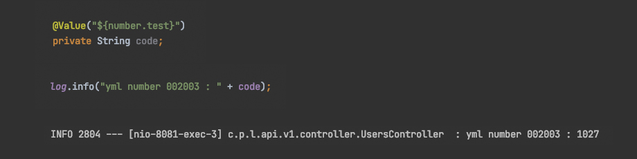 확인을 위해 log를 찍어보니 yml 파일에 002003으로 등록한 값이 프로그램 내부에서 1027로 출력되고 있는 것을 확인했는데요.