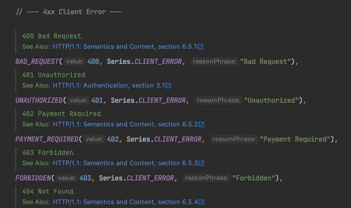 switch 부분을 보면 statusCode.series()의 값에 따라 HttpClientErrorException을 던지는 것을 볼 수 있습니다.