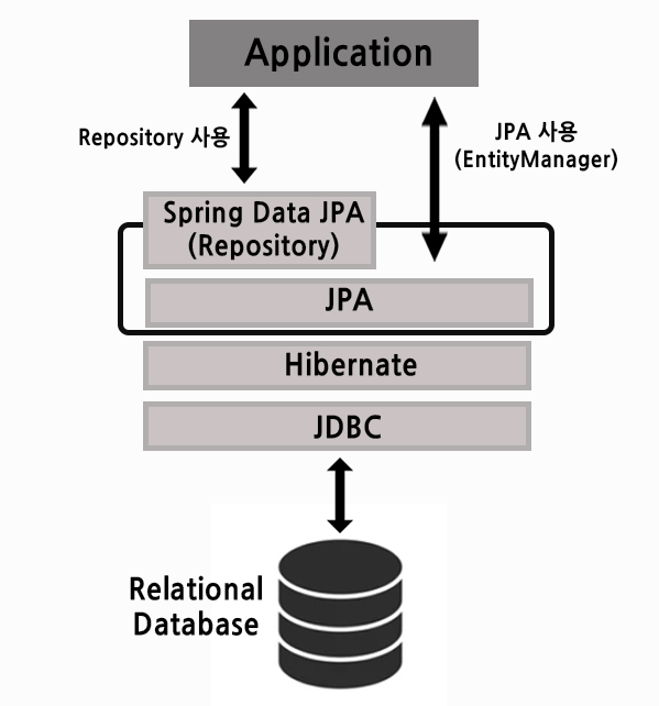 하지만 Spring으로 개발을 하면서 JPA를 사용하면 EntityManager를 직접 다루는 대신 대부분 Repository라는 인터페이스를 정의하여 사용하게 되는데요. 이때 사용하는 Repository가 바로 Spring Data JPA의 핵심이 됩니다.