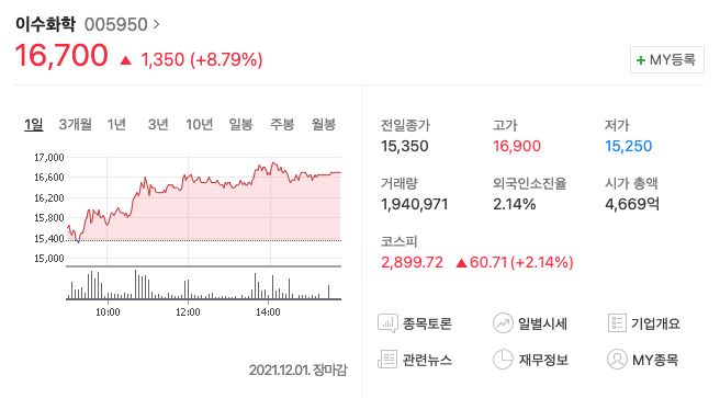 전고체 배터리 관련주로 주목받고 있는 관심종목 '이수화학'입니다.