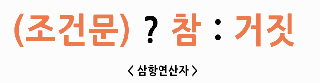 삼항연산자는 '(조건문) ? 참 : 거짓' 형식의 문법을 가지게 되는데요.