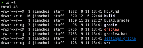 'ls' 명령어로 파일들을 자세하게 봤을 때 맨 앞에 'drwxr-xr-x', '-rw-r--r--'와 같은 문자들이 있습니다.