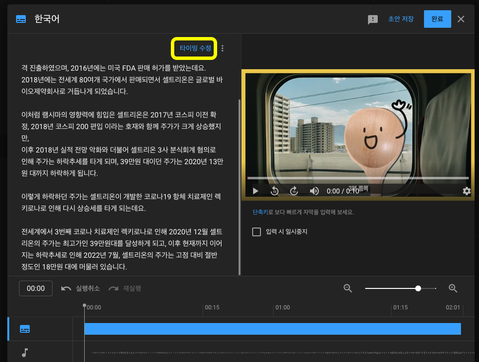 유튜브 자체 자막 업로드하는 방법(자동 동기화 기능 사용)