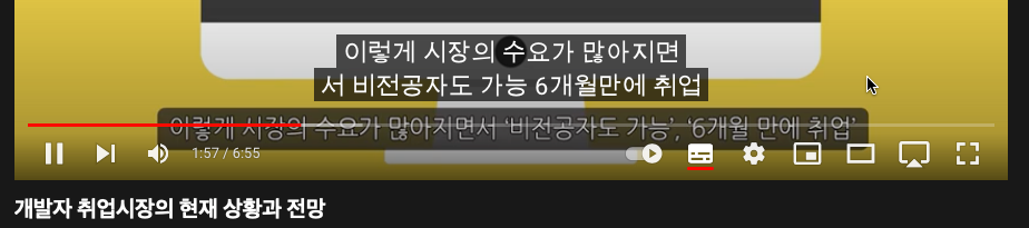 이후 영상을 확인하게 되면 다음과 같이 유튜브 자체 자막이 적용된 것을 볼 수 있습니다.