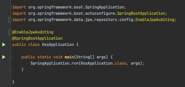 어플리케이션의 main method가 있는 클래스에 적용하며 JPA Auditing(감시, 감사) 기능을 활성화하기 위한 어노테이션입니다. 해당 어노테이션을 적용함으로써 createdDate, modifiedDate처럼 DB에 데이터가 저장되거나 수정될 때 언제, 누가 했는지를 자동으로 관리할 수 있게 됩니다.