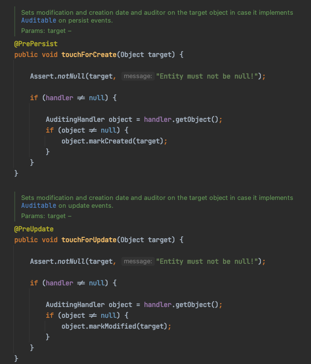 해당 클래스에 있는 touchForCreate(), touchForUpdate() 메서드입니다.